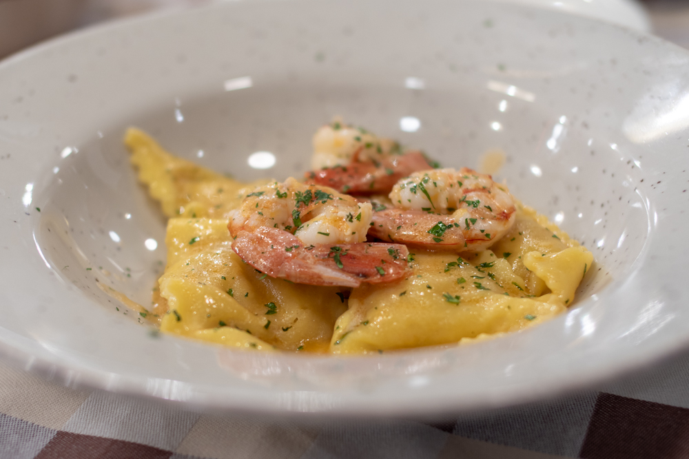 (シーフードのラビオリ。ちょっと食感がモサモサしている)